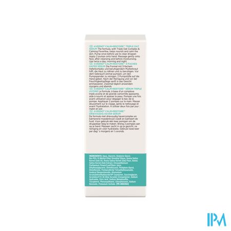 AVEENO® CALM+RESTORE ™ Drievoudig Haver Serum, met 3-voudig havercomplex en kalmerend moederkruid voedt en kalmeert de huid. Parabeenvrij en parfumvrij.
