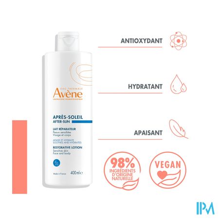 De Aftersun melk, rijk aan Thermaal water van Avène en verrijkt met antioxidanten en herstellende jojobaolie, kalmeert onmiddellijk de gevoelige huid die na blootstelling aan de zon oververhit is geraakt. De romige, smeltende textuur zorgt voor een aangenaam gevoel van intense verfrissing. De formule hydrateert de huid van het gezicht en lichaam langdurig, tot wel 48 uur lang*, en omhult haar met een delicate geur. Het is geschikt voor het hele gezin, ideaal voor volwassenen en kinderen vanaf 2 jaar. Uit respect voor het milieu is de ecologisch ontworpen flacon gemaakt van 100% gerecycleerd en recyclebaar plastic.