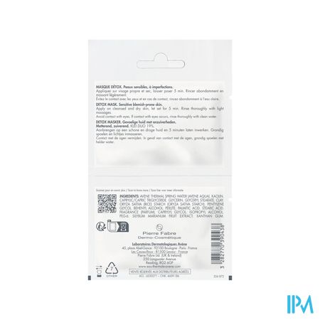 • TEINTMATTEREND: absorbeert overtollige talg dankzij het duo van klei • ZUIVEREND: is verrijkt met perliet voor een milde exfoliatie • HUIDKALMEREND: dankzij de combinatie van Thermaal Water van Avène en glycerine.
