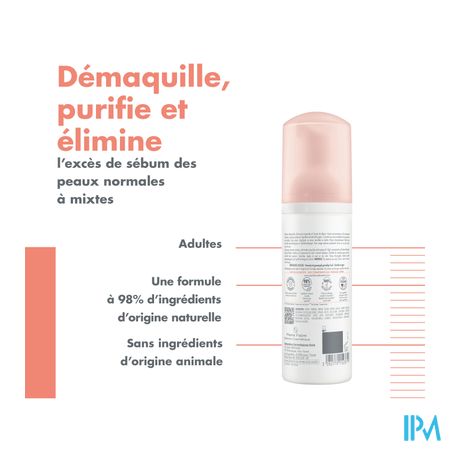 Dit romige, luchtige schuim met een subtiele geur verwijdert make-up, zuivert en kalmeert de huid dankzij de samenstelling op basis van thermaal water van Avène en glycerine, voor meer comfort. De zeepvrije formule bevat enkel de strikt noodzakelijke ingrediënten in de juiste hoeveelheid om dermatologische doeltreffendheid en tolerantie te garanderen*. Reinigend en make-upverwijderend schuim voor de ogen en de normale tot gemengde gevoelige huid. Het product zuivert en verwijdert onzuiverheden en overtollig talg. Met 98% van de ingrediënten van natuurlijke oorsprong en geen ingrediënten van dierlijke oorsprong behoudt dit product het natuurlijke evenwicht van de huid. De huid is schoon, zacht en comfortabel. De verpakking van het Reinigingsschuim 150 ml bevat 49% gerecycled materiaal. Het flesje is gemaakt van 100% gerecycled plastic**.