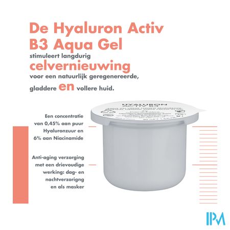 De AQUA vochtinbrengende en celvernieuwende gel-crème bevat een hoge concentratie van hyaluronzuur en niacinamide, die de celvernieuwing stimuleren en hun levensduur verlengen*. De huid wordt vernieuwd: ze is steviger, stralender, rimpels worden gecorrigeerd. De frisse, lichte textuur met subtiele bloemengeur hult de huid in een aangenaam gevoel. Anti-ageing gezichtsverzorging met drievoudige werking: dag- en nachtcrème en masker Getest op alle huidtypes, waaronder de gevoelige huid. Formule die voor 91% uit bestanddelen van natuurlijke oorsprong bestaat. Hervulbaar potje.