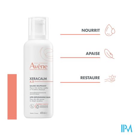 XERACALM AD Lipid-Replenishing Balm verzacht de jeuk veroorzaakt door een droge huid en respecteert het microbioom van de huid, dankzij de combinatie van I-modulia®, het eerste postbiotische actieve ingrediënt afgeleid van Thermaal Water van Avène, dat jeuk vermindert*, de huid stimuleert beschermt en bestrijdt irritaties, met Cer-omega, huidachtige lipiden die inwerken op droogheid en de huidbarrière herstellen, en Thermaal Water van Avène (kalmerend, tegen irritatie en verzachtend). Deze behandeling is perfect samengesteld voor de zeer droge huid die vatbaar is voor atopisch eczeem en jeuk bij zuigelingen, kinderen en volwassenen. Het is niet-comedogeen en geurvrij, ontwikkeld om het risico op allergische reacties te minimaliseren en bevat alleen ingrediënten die gunstig zijn voor de huid. Deze hoogwaardige behandeling garandeert optimale veiligheid en respect voor de huid en het huidmicrobioom dankzij Sterile Cosmetics®, een unieke technologie die het product tijdens gebruik steriel houdt, en de perfect hermetische pompslang. *Vanwege een droge huid