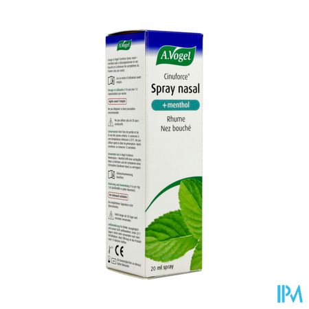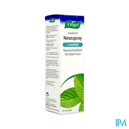 A.Vogel Cinuforce Neusspray Menthol 20ml is een voedingssupplement, verkrijgbaar in uw buurtapotheek of online apotheek. Neem niet meer dan de aanbevolen dagelijkse dosis vermeld op de verpakking. Het vervangt geen gezonde levensstijl en gevarieerde en evenwichtige voeding. Vraag raad aan uw apotheker. Het product altijd buiten het bereik van kinderen houden.