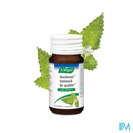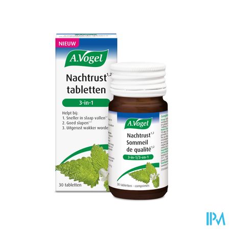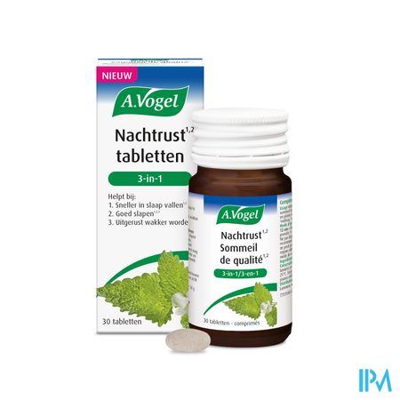 A.vogel Nachtrust 3in1 Tabl 30 is een voedingssupplement, verkrijgbaar in uw buurtapotheek of online apotheek. Neem niet meer dan de aanbevolen dagelijkse dosis vermeld op de verpakking. Het vervangt geen gezonde levensstijl en gevarieerde en evenwichtige voeding. Vraag raad aan uw apotheker. Het product altijd buiten het bereik van kinderen houden.
