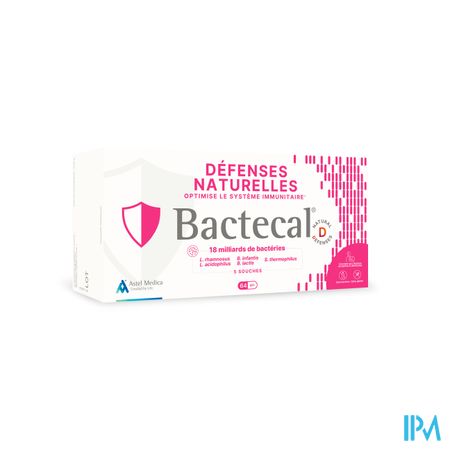 Bactecal is een voedingssupplement en bevat 3 bacteriefamilies: Lactobacillus, Bifidobacterium en Streptococcus thermophilus. De concentratie aan bacteriën van Bactecal is 18 miljard per capsule. Gezien de gevarieerde samenstelling, de ideale concentratie en de intrinsieke eigenschappen van elk bestanddeel heeft Bactecal een zeer breed spectrum van toepassingen bij volwassenen en kinderen vanaf de geboorte.