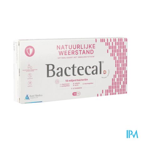 Bactecal D is een voedingssupplement en bevat 3 bacteriefamilies: Lactobacillus, Bifidobacterium en Streptococcus thermophilus. De concentratie aan bacteriën van Bactecal D is 18 miljard per capsule. Gezien de gevarieerde samenstelling, de ideale concentratie en de intrinsieke eigenschappen van elk bestanddeel heeft Bactecal D een zeer breed spectrum van toepassingen bij volwassenen en kinderen vanaf de geboorte.