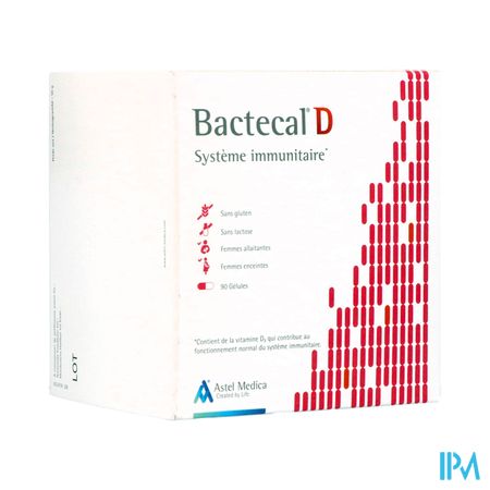 Bactecal D is een voedingssupplement en bevat 3 bacteriefamilies: Lactobacillus, Bifidobacterium en Streptococcus thermophilus. De concentratie aan bacteriën van Bactecal D is 18 miljard per capsule. Gezien de gevarieerde samenstelling, de ideale concentratie en de intrinsieke eigenschappen van elk bestanddeel heeft Bactecal D een zeer breed spectrum van toepassingen bij volwassenen en kinderen vanaf de geboorte.