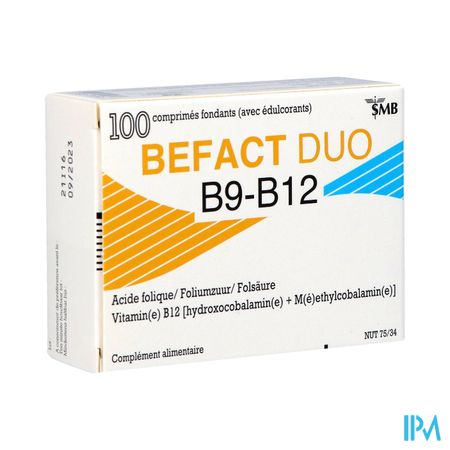 Befact Duo Kauwtabletten 100 is een voedingssupplement, verkrijgbaar in uw buurtapotheek of online apotheek. Neem niet meer dan de aanbevolen dagelijkse dosis vermeld op de verpakking. Het vervangt geen gezonde levensstijl en gevarieerde en evenwichtige voeding. Vraag raad aan uw apotheker. Het product altijd buiten het bereik van kinderen houden.
