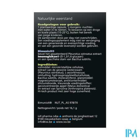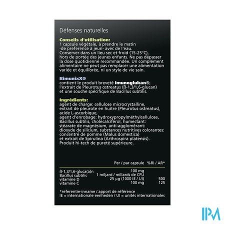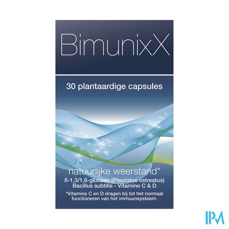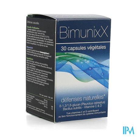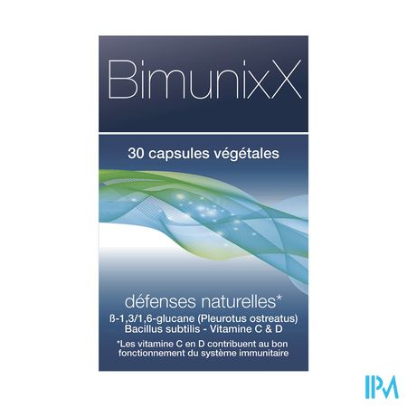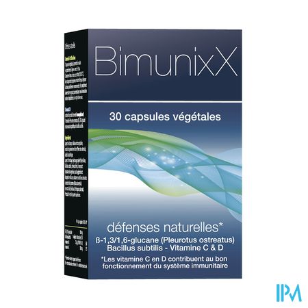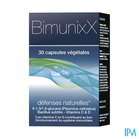 Bimunixx Caps 30 is een voedingssupplement, verkrijgbaar in uw buurtapotheek of online apotheek. Neem niet meer dan de aanbevolen dagelijkse dosis vermeld op de verpakking. Het vervangt geen gezonde levensstijl en gevarieerde en evenwichtige voeding. Vraag raad aan uw apotheker. Het product altijd buiten het bereik van kinderen houden.