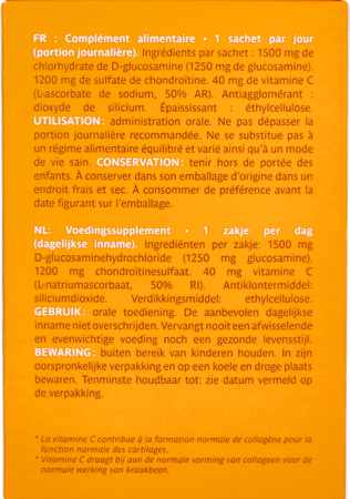 goede werking van de gewrichten verzekerd. Met de tijd kan slijtage aan het kraakbeen leiden tot gewrichtsproblemen en een hinderlijk gevoel, waardoor uw mobiliteit kan worden ondermijnd. Extra inname van glucosamine en chondroïtine kan helpen de beweeglijkheid van de gewrichten te verbeteren2-3.