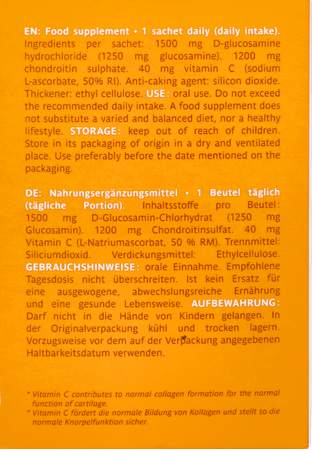 • 1500 mg D-glucosamine HCl (1.250 mg glucosamine)