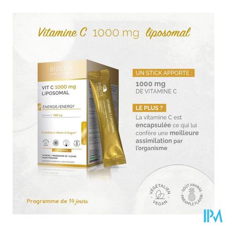 Biocyte Vit C 1000mg Liposomal Stick 14 is een voedingssupplement, verkrijgbaar in uw buurtapotheek of online apotheek. Neem niet meer dan de aanbevolen dagelijkse dosis vermeld op de verpakking. Het vervangt geen gezonde levensstijl en gevarieerde en evenwichtige voeding. Vraag raad aan uw apotheker. Het product altijd buiten het bereik van kinderen houden.