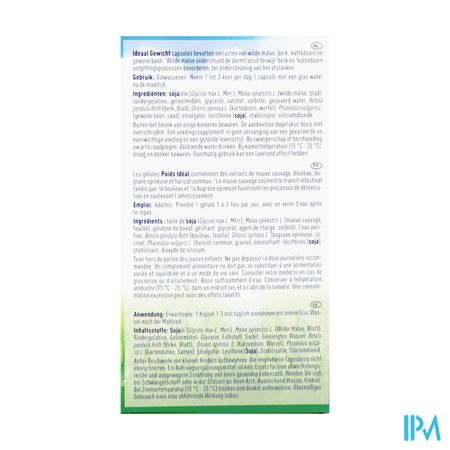 Bional Ideaal Gewicht capsules bevatten extracten van wilde malve, berk en kattedoorn om te helpen bij het afslanken. Wilde malve ondersteunt de darmtransit terwijl berk en kattedoorn ontgiftingsprocessen bevorderen, ter ondersteuning van het afslanken.