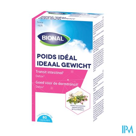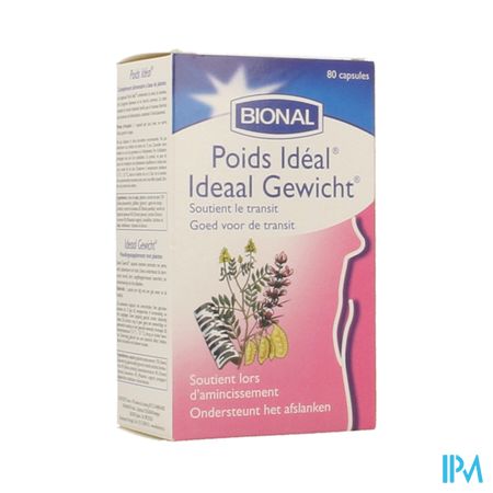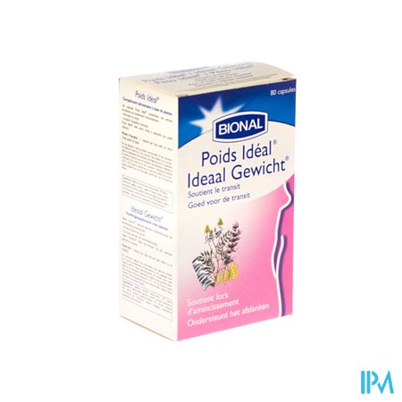 Bional Ideaal Gewicht Caps 80 is een voedingssupplement, verkrijgbaar in uw buurtapotheek of online apotheek. Neem niet meer dan de aanbevolen dagelijkse dosis vermeld op de verpakking. Het vervangt geen gezonde levensstijl en gevarieerde en evenwichtige voeding. Vraag raad aan uw apotheker. Het product altijd buiten het bereik van kinderen houden.