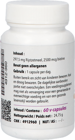 2500mcg biotine per capsule.