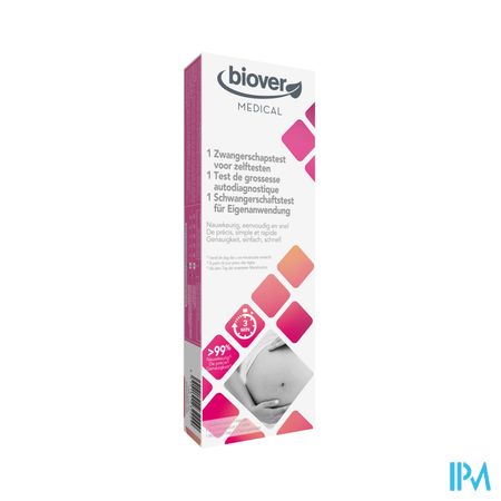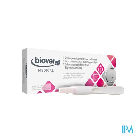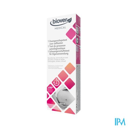 Biover Medical meet de hoeveelheid zwangerschapshormoon, humaan choriongonadotrofine (hCG)-hormoon in de urine van een zwangere vrouw. Dit hormoon, dat wordt aangemaakt zodra u zwanger bent, wordt vrijgegeven door de placenta meteen na de innesteling en de concentratie ervan stijgt snel in de vroege fasen van de zwangerschap. Omdat het meerdere vormen van zwangerschapshormoon meet, is Biover Medical zeer nauwkeurig in het opsporen van een zwangerschap. De test heeft een analytische gevoeligheid van 25 mIU/ml hCG. In laboratoriumstudies is Biover Medical meer dan 99 % nauwkeurig vanaf de dag van de verwachte menstruatie.