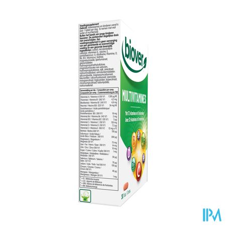 Biover Multivitamine Comp 30 is een voedingssupplement, verkrijgbaar in uw buurtapotheek of online apotheek. Neem niet meer dan de aanbevolen dagelijkse dosis vermeld op de verpakking. Het vervangt geen gezonde levensstijl en gevarieerde en evenwichtige voeding. Vraag raad aan uw apotheker. Het product altijd buiten het bereik van kinderen houden.