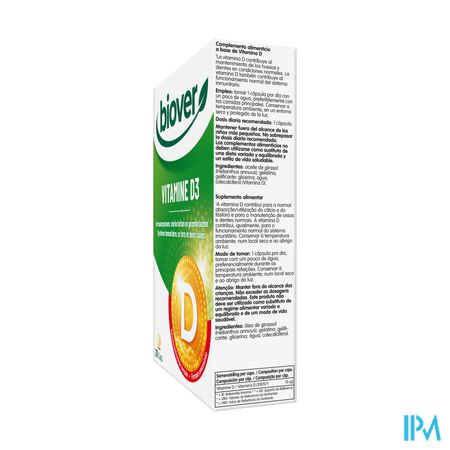 Biover Vitamine D3 Caps 30 is een voedingssupplement, verkrijgbaar in uw buurtapotheek of online apotheek. Neem niet meer dan de aanbevolen dagelijkse dosis vermeld op de verpakking. Het vervangt geen gezonde levensstijl en gevarieerde en evenwichtige voeding. Vraag raad aan uw apotheker. Het product altijd buiten het bereik van kinderen houden.