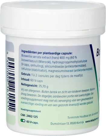 Boswellia Extract 400mg Caps 60 Deba is een voedingssupplement, verkrijgbaar in uw buurtapotheek of online apotheek. Neem niet meer dan de aanbevolen dagelijkse dosis vermeld op de verpakking. Het vervangt geen gezonde levensstijl en gevarieerde en evenwichtige voeding. Vraag raad aan uw apotheker. Het product altijd buiten het bereik van kinderen houden.