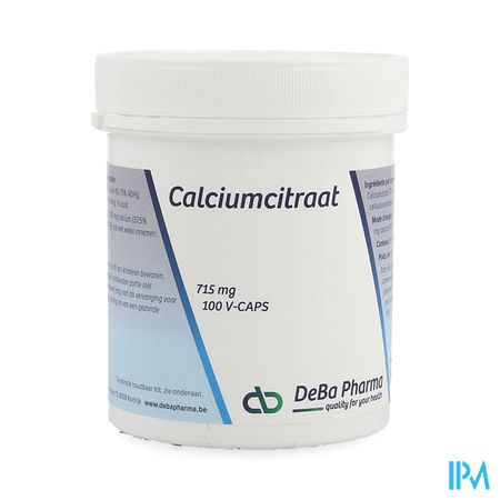 Calciumcitraat V-caps 100 Deba is een voedingssupplement, verkrijgbaar in uw buurtapotheek of online apotheek. Neem niet meer dan de aanbevolen dagelijkse dosis vermeld op de verpakking. Het vervangt geen gezonde levensstijl en gevarieerde en evenwichtige voeding. Vraag raad aan uw apotheker. Het product altijd buiten het bereik van kinderen houden.