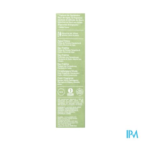 Verstuif Eau Fraîche Fleur de Vigne op elk moment van de dag op uw huid of kleding.