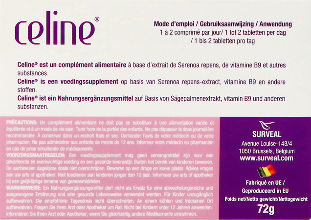 Celine TM is een voedingssupplement met een speciale combinatie van ingrediënten met een breed scala aan voordelen voor de gezondheid en het goed functioneren van het voortplantingssysteem van vrouwen. Verschillende factoren hebben een negatieve invloed op de voortplantingsfunctie van vrouwen en kunnen leiden tot verstoring van de ovulatiecyclus waardoor de vruchtbaarheid afneemt. CelineTM bevat myoinositol, N-acetylcysteïne, alfa-liponzuur, Serenoa repens-extract en folaat die, op basis van evidence-based medicine, helpen om een goede vruchtbaarheid en reproductieve functie te herstellen bij vrouwen met of zonder een kinderwens.