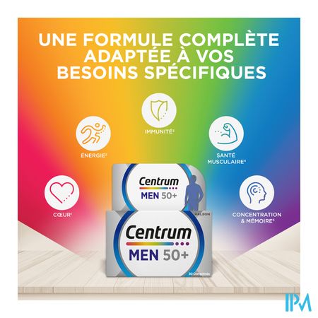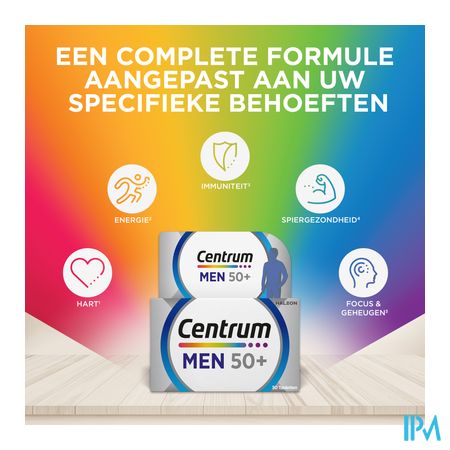 Centrum Men 50+ is speciaal ontwikkeld en gebalanceerd om de voedingsbehoeften van mannen vanaf 50 jaar te ondersteunen. De nutriënten IJzer, vitamine B en magnesium spelen een belangrijke rol bij een normaal energieleverend metabolisme bij mannen vanaf 50 jaar te behouden. Deze zijn dan ook aanwezig in Centrum Men 50+