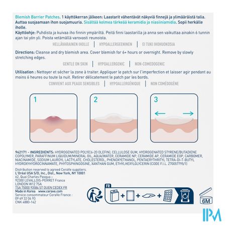 Cerave Anti-Puistjes Patches is een patch die een effectieve oplossing biedt voor het reinigen en het verminderen van puistjes. De patches zijn speciaal ontworpen om de acnegevoelige huid te kalmeren en snel te helpen herstellen. Puistjes verminderen zichtbaar na slechts 3 uur* zonder vlekken achter te laten. De formule is verrijkt met hydrocolloïde technologie die overtollige talg absorbeert, 3 essentiële ceramiden die de huidbarrière helpen te herstellen, en Niacinamide (vitamine B3) dat bekend staat om zijn kalmerende werking. '*Klinische evaluatie na aanbrengen van de patch, 47 personen