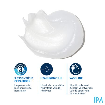 CeraVe Intensieve Herstellende Balsem biedt een antwoord op de problemen van een droge, ruwe, beschadigde en kwetsbare huid. Deze balsem helpt de natuurlijke huidbarrière te herstellen en vocht vast te houden voor langdurige hydratatie en onmiddellijke verlichting van irritaties. De geavanceerde formule is gebaseerd op 3 zorgvuldig geselecteerde ingrediënten, waaronder vaseline, hyaluronzuur en 3 essentiële ceramiden, die een barrière op het huidoppervlak vormen om de huid te beschermen, vochtverlies te voorkomen en ongemakken te verzachten. Dit veelzijdige product is geschikt voor het gezicht, lichaam en zelfs de lippen. Bovendien voelt de balsem niet-vettig aan en is hij gemakkelijk aan te brengen. Hij wordt gemakkelijk geabsorbeerd door je huid en laat je huid tegelijkertijd ademen. Zo blijft je huid soepel en zacht. Ontdek zelf hoe dit unieke product je huidverzorgingsroutine kan transformeren en geef je huid de verzorging die ze verdient. De Intensieve Herstellende Balsem is het resultaat van een nauwe samenwerking tussen dermatologen en CeraVe, een vertrouwd merk in dermatologische zorg. CeraVe biedt vandaag een verzorging voor iedereen en bevat de 3 essentiële ceramiden waar een gezonde huid behoefte aan heeft. CeraVe won meer erkenningen van de Nation Eczema Association dan eender welk ander merk dankzij de toegankelijke, dermatologisch ondersteunde oplossingen om de huid te hydrateren en helpen herstellen.