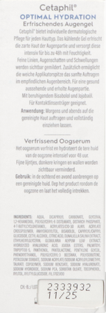 Het verkoelende en verfrissende oogserum vermindert zichtbaar droogtelijntjes, donkere kringen en wallen. Dankzij de zachte applicatortip kan hij zachtjes worden aangebracht op de gevoelige huid rond de ogen. Het kalmeert de geïrriteerde huid en versterkt de barrièrefunctie. De crème is door dermatologen en oogartsen getest en