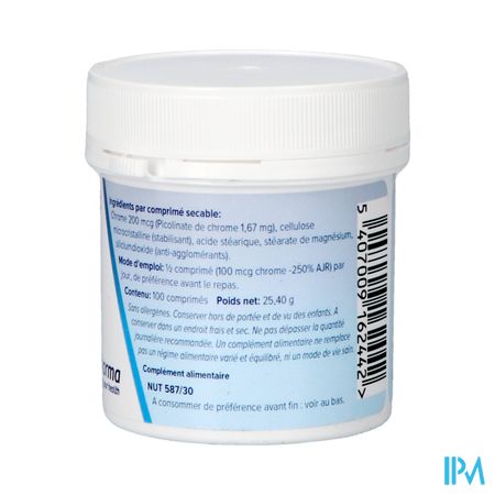Chroom draagt bij tot een normaal metabolisme van de macronutriënten (vetten, suikers en eiwitten) en de instandhouding van normale bloedsuikergehalten.Dit product bevat geen lactose, geen gluten en is vrij van bewaarmiddelen, kleur- en smaakstoffen.