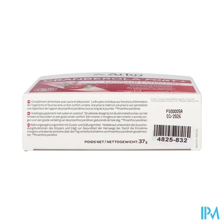 Cranberola® Fort is een voedingssupplement met suiker en zoetstof, op basis van Cranberry, Struikheide en D-Mannose, dat 36 mg totale proanthocyanidinen (PACs) levert per dag, evenals melkzuurbacteriën voor een volledige formule.