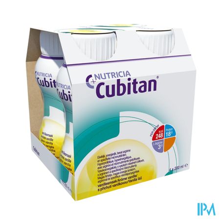 Cubitan Vanille 4x200ml is een voedingssupplement, verkrijgbaar in uw buurtapotheek of online apotheek. Neem niet meer dan de aanbevolen dagelijkse dosis vermeld op de verpakking. Het vervangt geen gezonde levensstijl en gevarieerde en evenwichtige voeding. Vraag raad aan uw apotheker. Het product altijd buiten het bereik van kinderen houden.