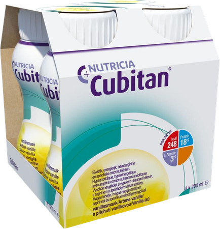 Cubitan is een eiwitrijke, energierijke, kant-en-klare drinkvoeding. Het levert specifieke voedingsstoffen zoals arginine, energie, vitaminen en mineralen om mogelijke voedingstekorten aan te vullen.