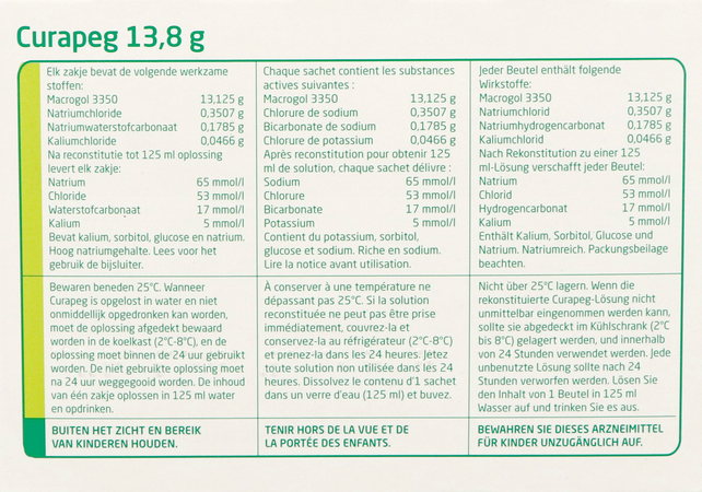 Een behandelingskuur van fecale impactie duurt met Curapeg gewoonlijk niet langer dan 3dagen.