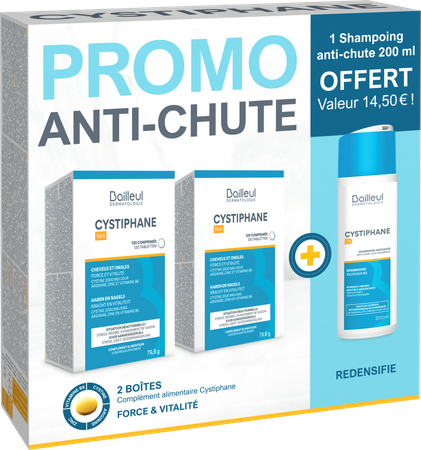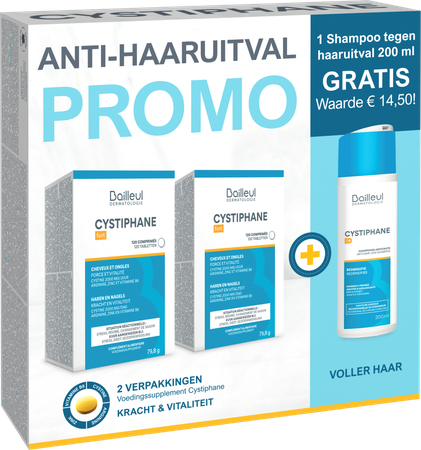 Cystiphane Tabl 2x120+sh A/haaruitval 200ml Gratis is een voedingssupplement, verkrijgbaar in uw buurtapotheek of online apotheek. Neem niet meer dan de aanbevolen dagelijkse dosis vermeld op de verpakking. Het vervangt geen gezonde levensstijl en gevarieerde en evenwichtige voeding. Vraag raad aan uw apotheker. Het product altijd buiten het bereik van kinderen houden.