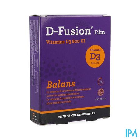 D-fusion Film 800ui Film Orodisp 28 is een voedingssupplement, verkrijgbaar in uw buurtapotheek of online apotheek. Neem niet meer dan de aanbevolen dagelijkse dosis vermeld op de verpakking. Het vervangt geen gezonde levensstijl en gevarieerde en evenwichtige voeding. Vraag raad aan uw apotheker. Het product altijd buiten het bereik van kinderen houden.