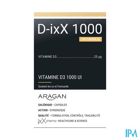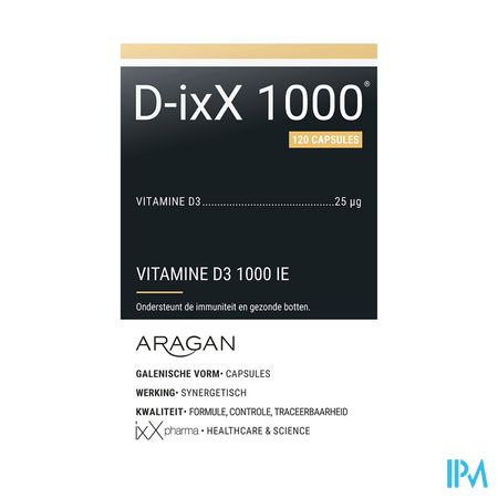 D-ixx 1000 Caps 120 is een voedingssupplement, verkrijgbaar in uw buurtapotheek of online apotheek. Neem niet meer dan de aanbevolen dagelijkse dosis vermeld op de verpakking. Het vervangt geen gezonde levensstijl en gevarieerde en evenwichtige voeding. Vraag raad aan uw apotheker. Het product altijd buiten het bereik van kinderen houden.