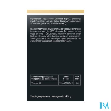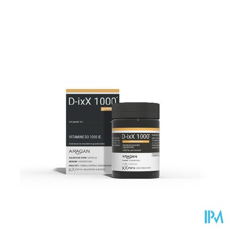 D-ixX 1000 bevat 1000 IE (internationale eenheden) of 25 µg vitamine D3 per pareltje & olijfolie voor een goede opname.