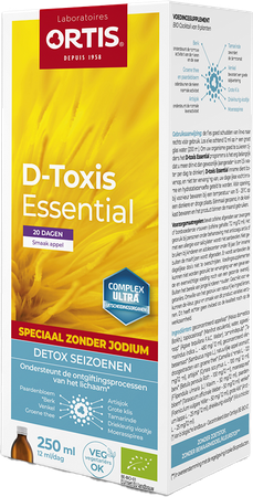 D Toxis Essential Zonder Iodium Appel Bio 250ml is een voedingssupplement, verkrijgbaar in uw buurtapotheek of online apotheek. Neem niet meer dan de aanbevolen dagelijkse dosis vermeld op de verpakking. Het vervangt geen gezonde levensstijl en gevarieerde en evenwichtige voeding. Vraag raad aan uw apotheker. Het product altijd buiten het bereik van kinderen houden.