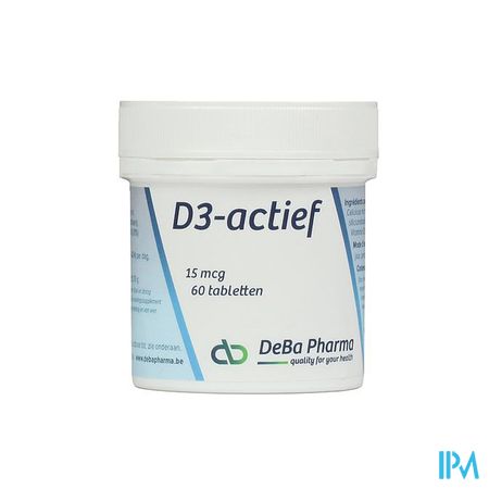 D3-actif Comp 60x15mcg Deba is een voedingssupplement, verkrijgbaar in uw buurtapotheek of online apotheek. Neem niet meer dan de aanbevolen dagelijkse dosis vermeld op de verpakking. Het vervangt geen gezonde levensstijl en gevarieerde en evenwichtige voeding. Vraag raad aan uw apotheker. Het product altijd buiten het bereik van kinderen houden.