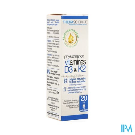 D3 K2 Fl 20ml Physiomance Phy309 is een voedingssupplement, verkrijgbaar in uw buurtapotheek of online apotheek. Neem niet meer dan de aanbevolen dagelijkse dosis vermeld op de verpakking. Het vervangt geen gezonde levensstijl en gevarieerde en evenwichtige voeding. Vraag raad aan uw apotheker. Het product altijd buiten het bereik van kinderen houden.