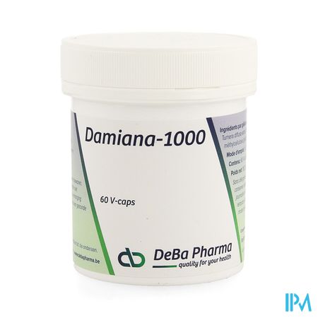 Damiana-1000 V-caps 60 Deba is een voedingssupplement, verkrijgbaar in uw buurtapotheek of online apotheek. Neem niet meer dan de aanbevolen dagelijkse dosis vermeld op de verpakking. Het vervangt geen gezonde levensstijl en gevarieerde en evenwichtige voeding. Vraag raad aan uw apotheker. Het product altijd buiten het bereik van kinderen houden.