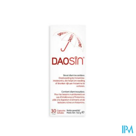 DAOSiN® is een supplement met het enzym diamineoxidase (DAO) dat je (darmen) helpt om histamine uit voeding af te breken. DAOSiN® vult het lichaamseigen DAO-enzym aan ter bevordering van de afbraak van histamine.