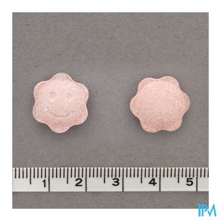 Zoetstoffen (sorbitol, xylitol, sucralose), Vulstof (calciumfosfaten), Mineralen [magnesium (magnesiumoxide), ijzer (ijzerpyrofosfaat), zink (zinkcitraat), mangaan (mangaansulfaat), koper (kopercarbonaat), chroom (chroomchloride), jood (kaliumjodide), molybdeen (natriummolybdaat), seleen (natriumseleniet)], Vitamines (C, E, B3, D, B5, B1, B12, B6, B2, K, foliumzuur, biotine), Anti-klontermiddelen (mono- en diglyceriden van vetzuren, magnesiumzouten van vetzuren), Voedingszuur (citroenzuur), Aroma (frambozenaroma), Kleurstof (karmijn), Maïszetmeel (Zea mays L.), Geleermiddel (polyvinylpyrrolidon).