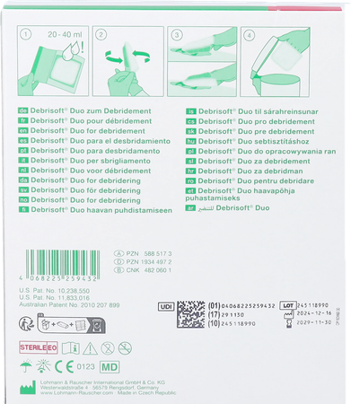 - Aanpasbaar aan de wondsituatie en behoefte van de patiënt:Debrisoft Duo is ontwikkeld om effectiever débrideren van vastgeplakte, fibreuze weefselresten mogelijk te maken dan het gebruikelijke mechanische débridement.