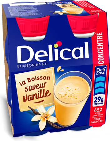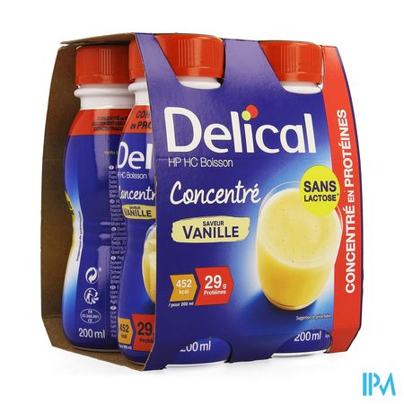 Delical Geconcentr. Vanille 4x200ml is een voedingssupplement, verkrijgbaar in uw buurtapotheek of online apotheek. Neem niet meer dan de aanbevolen dagelijkse dosis vermeld op de verpakking. Het vervangt geen gezonde levensstijl en gevarieerde en evenwichtige voeding. Vraag raad aan uw apotheker. Het product altijd buiten het bereik van kinderen houden.