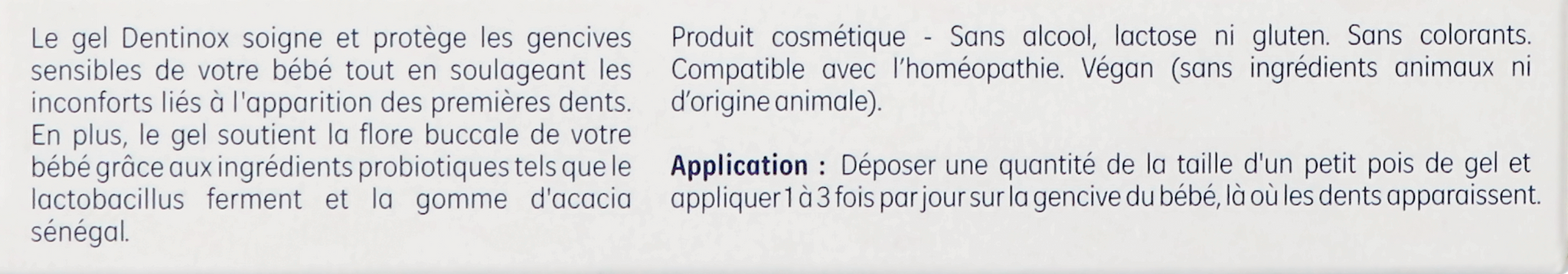 Dentinox Gel mag maximaal 3 keer per dag in een hoeveelheid ter grootte van een erwt op het tandvlees van je baby worden aangebracht.
