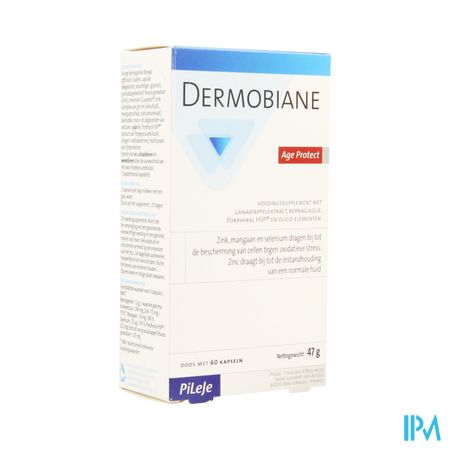 Dermobiane Age Protect Caps 60x721mg is een voedingssupplement, verkrijgbaar in uw buurtapotheek of online apotheek. Neem niet meer dan de aanbevolen dagelijkse dosis vermeld op de verpakking. Het vervangt geen gezonde levensstijl en gevarieerde en evenwichtige voeding. Vraag raad aan uw apotheker. Het product altijd buiten het bereik van kinderen houden.