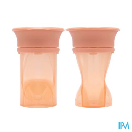 Met de 360 graden beker maakt het niet uit waar het kindje aan de rand drinkt. Wanneer het kindje aan de rand zuigt, kan het kindje drinken. Door de vorm van de beker stroomt het drankje naar de rand wanneer je de beker horizontaal houdt. Dit zorgt dat je kind de nek niet naar achter hoeft te buigen. Door het slanke ergonomische model is de beker goed vast te houden voor kleine handjes.